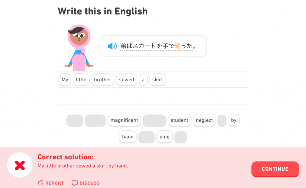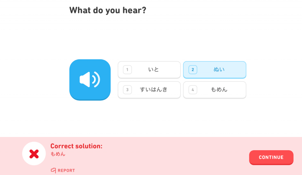 The duolingo practice modes are generally useful in quizzing you on Japanese in context, however – we did find one technical issue in the design.
