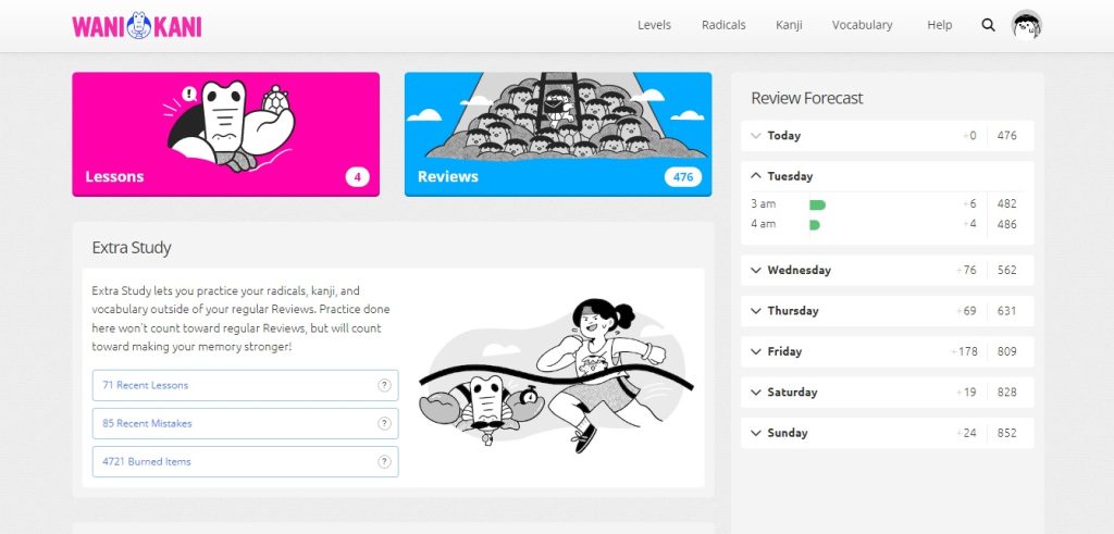 By the time I prepared for N2, I had already reached level 35 and luckily the kanji in these levels are in the N2 exam. The method they use is a great help for memorizing. The only downside of Wanikani is that you need to start from the beginner level because you can’t skip the level. So if you already know kanji, it won’t be fun to start learning from 一、ニ、三 again.