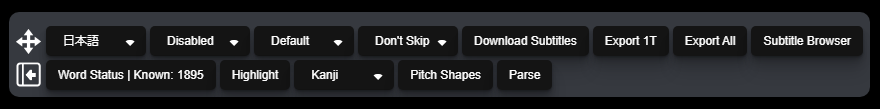 The seventh button is the Export All Button and allows you to export all subtitles lines in a show as Anki cards.
