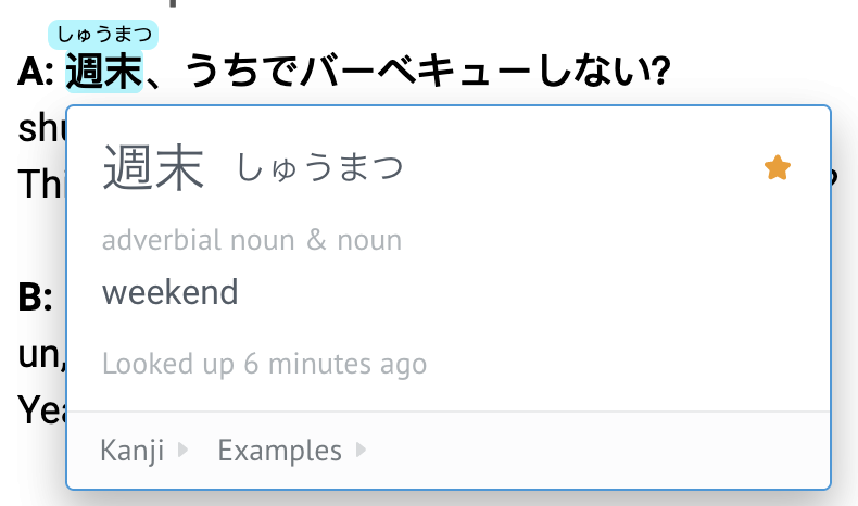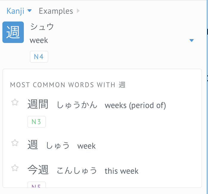 Another highlight of this extention is that you are able to make a star on the top right corner. Doing this adds the kanji to your list of vocabularies you have interacted with. You can access this list when you sign into Japanese IO website, in the vocabulary section.
