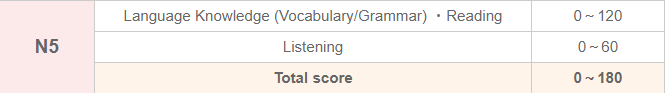 When you take the JLPT N5 – the test will be divided into two testing sections. This means that you will have a cumulative score for the Kanji, Vocabulary, Reading and Grammar. And you will be tested separately with a listening section.