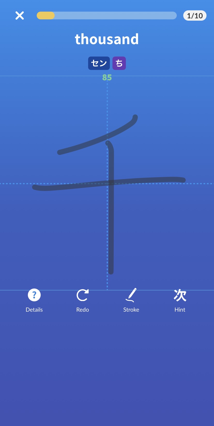 Kaizen Languages Japanese app has a Kanji writing section in the app that contains broad study material from JLPT N5 to N1 level. Each JLPT level has more than 10 sets of Kanjis, where you can study the kanjis, take the reading quiz and a writing quiz. When taking the kanji writing quiz, the app provides the English word: the on and kun reading of the kanji. This allows you to guess what kanji to write. If you are ever stuck on the question, you can ask for a hint that displays the dotted line of the kanji, or the individual stroke of the kanji.