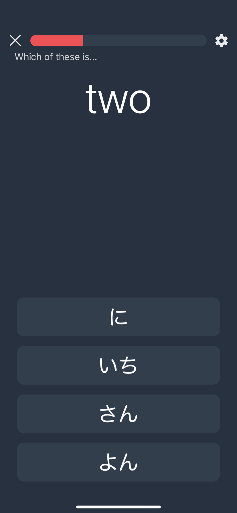 After practicing, the app will test you to match the kanji with the hiragana reading. It also quizes you on the English meaning with the hiragana reading. This app uses a number of combinations to test your knowledge and memorization of the vocabulary. Within the two kanjis, the repetition of quizzing you on kanji will help you to remember the reading, as well as practice writing numerous times.