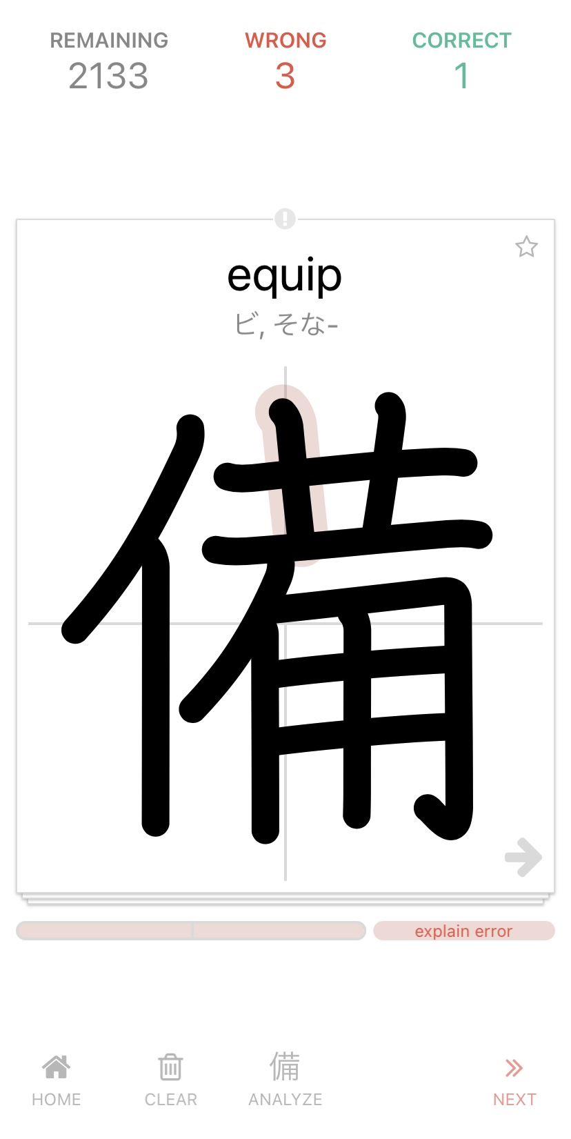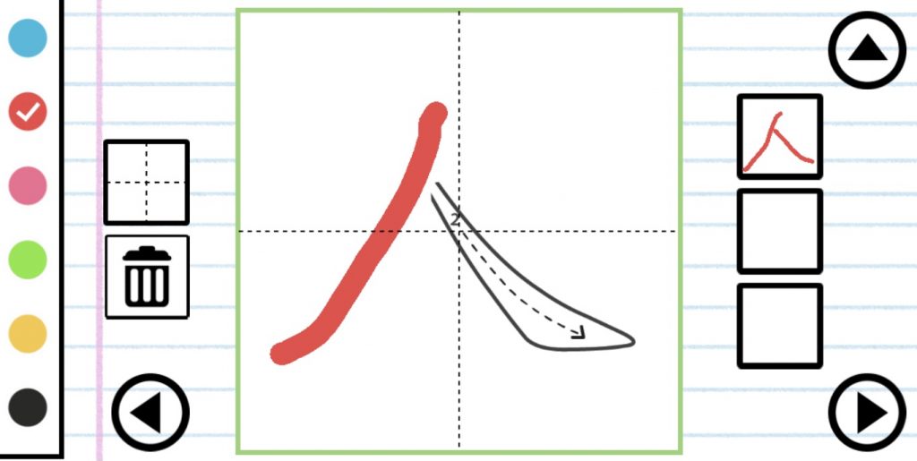 Kanji Teacher learning app separates itself from the others in the way that it absolutely does not let you pass onto the next kanji, if you did not write the kanji in the correct order of strokes. If your phone is on a buzzer, it will vibrate, letting you know you missed the right kanji order. After correcting yourself and writing the correct stroke, they will highlight the area where you have made a mistake and you can compare to the current kanji you wrote, opposed to the kanji you wrote wrongly.