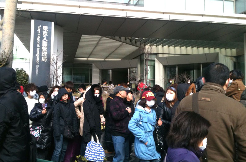 Tokyo Regional Immigration Bureau normally has a line of people waiting for it to open starting from 7:30 most mornings. Mondays and Fridays are especially busy due to it not being open on weekends.